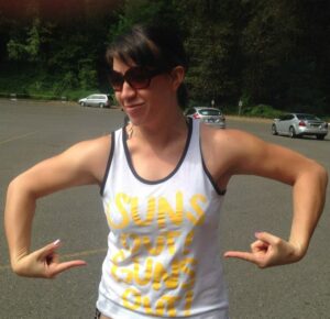 By the time I was 23, I was deeply depressed, constantly getting sick, and I’d get winded just taking the stairs. But, that’s when I was lucky enough to stumble into a wushu practice at my university and fall in love with the sport. That was the start of a 20-year journey of wushu, competitive roller derby, and learning to love my big body–all while finding opportunities to get nerdy about movement and the body whenever I could.